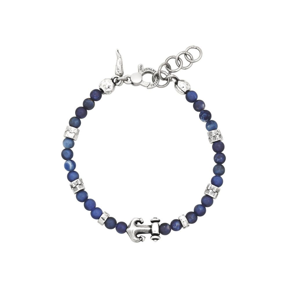 Bracciale Giovanni Raspini prodotto in argento 925 alternato dalle intense tonalità blu della sodalite e una lavorazione centrale a forma di ancora.