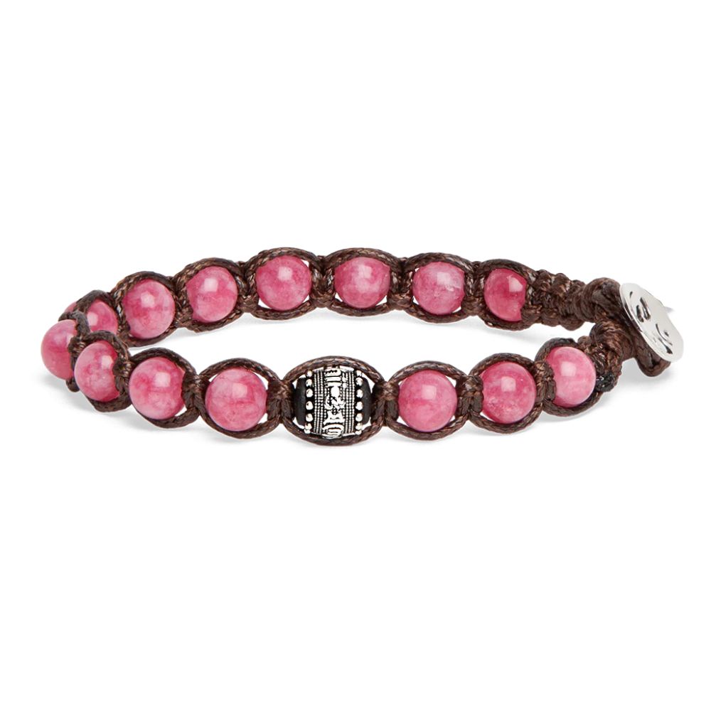Dalla tradizione spirituale tibetana nasce questo bracciale Tamashii della linea Ruota della Preghiera, che unisce l’energia della giada watermelon al classico cordoncino marrone benedetto dai monaci buddisti.