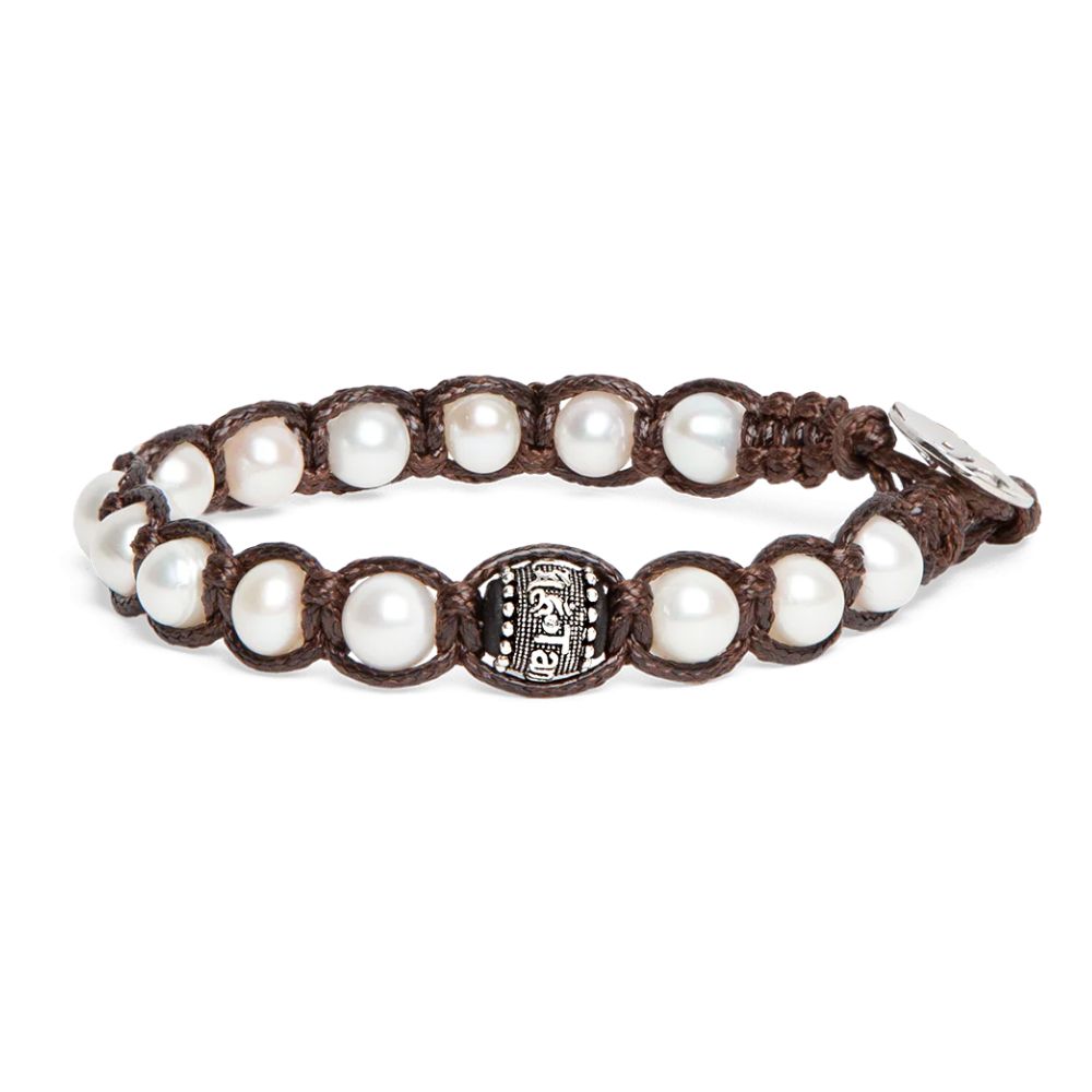 Le perle naturali hanno un diametro di 6 mm e il cordoncino è facilmente regolabile grazie alle asole predisposte, adattandosi con eleganza a ogni polso.