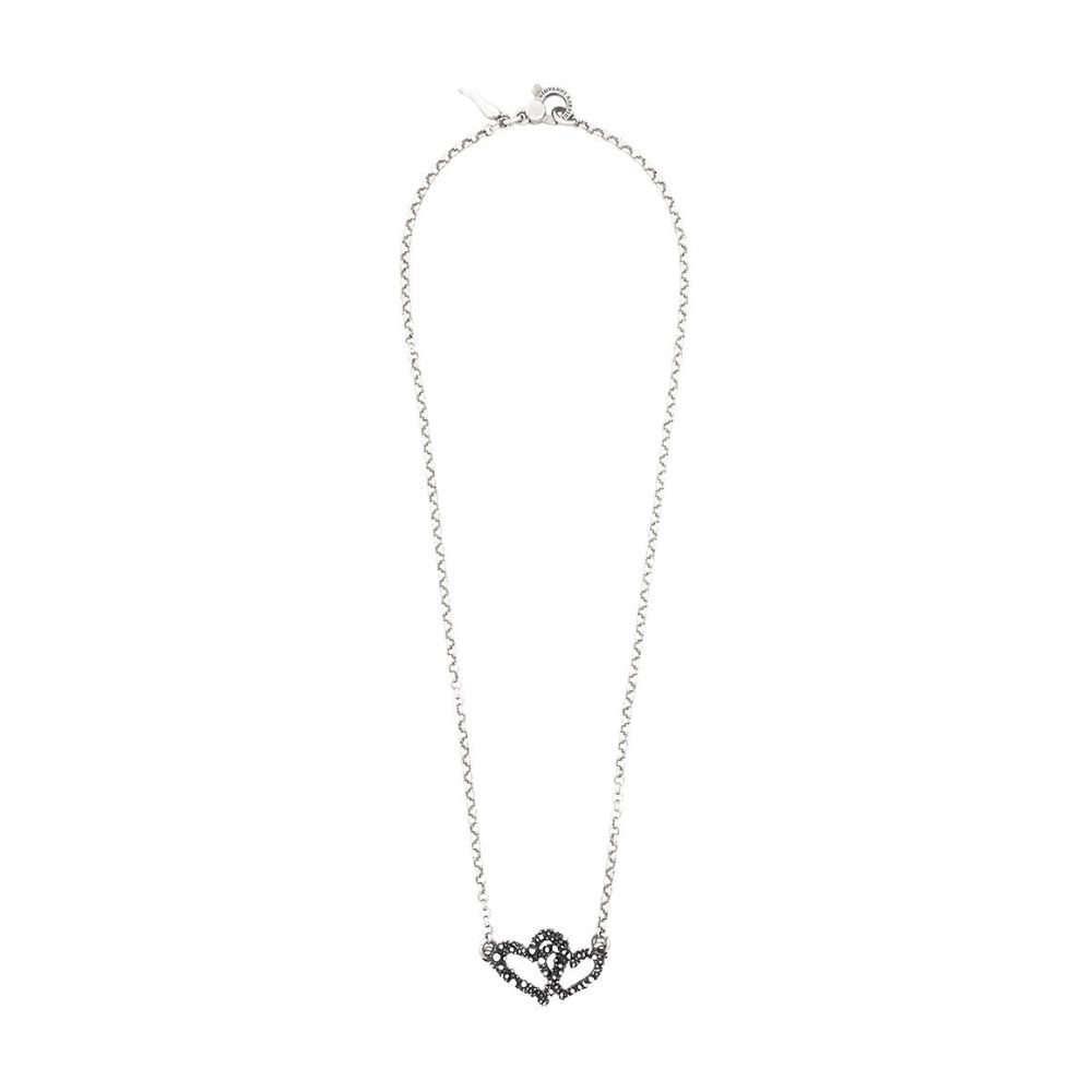 Il gioiello è caratterizzato da un pendente a forma di doppio cuore anch’esso finemente lavorato.