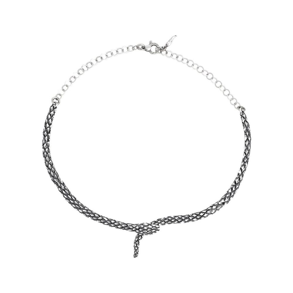 Interamente prodotta in argento 925, questo modello si distingue per la minuziosa lavorazione che richiama la figura sinuosa del serpente.