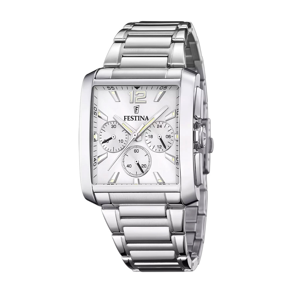 Festina F20635/1 Herrenuhr mit einem 37 mm rechteckigen Stahlgehäuse, 12,5 mm dick.