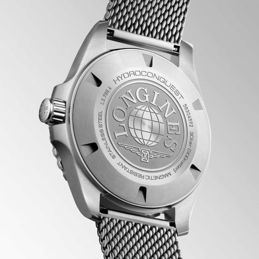 Longines Zeitmesser mit mechanischem Uhrwerk mit Automatikaufzug, Kaliber L888, ausgestattet mit einer monokristallinen Silizium-Unruhspirale und einer Frequenz von 25.200 Halbschwingungen pro Stunde. Es garantiert eine Gangreserve von etwa 72 Stunden.