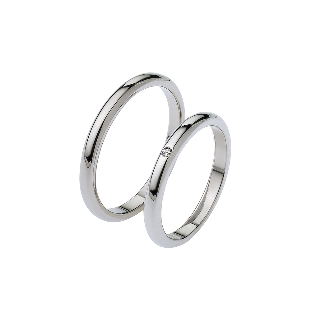 This model features a fine, polished finish, illuminated in the women’s version by a 0.01-carat diamond (F-VS1).