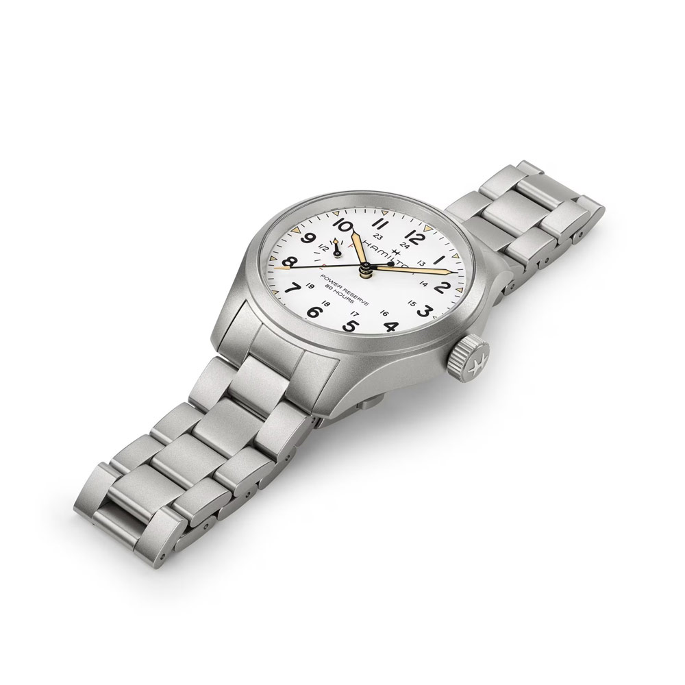 Hamilton Khaki Field Mechanical Power Reserve H69509110 Caliber H-23 in acciaio inox satinato.