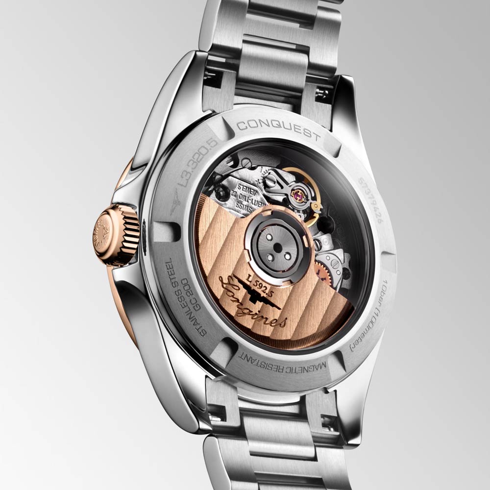 Orologio con movimento meccanico automatico, calibro L888 con 25.200 alternanze orarie e circa 72 ore di riserva di carica. Il bilancere-spirale è in silicio monocristallino.