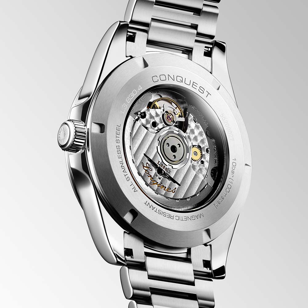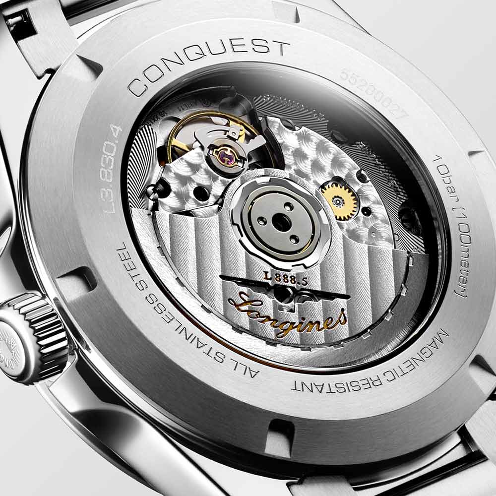 Orologio con movimento meccanico a carica automatica. Calibro Longines L888, 25.200 alternanze orarie, circa 72 ore di riserva di carica. Funzioni data, ore, minuti, secondi.