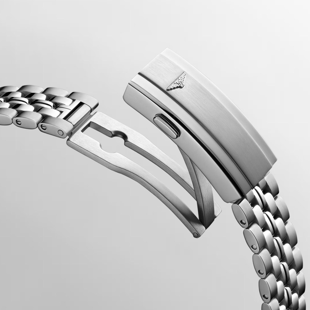 Orologio con movimento meccanico automatico di manifattura Longines, calibro L836, famoso per la frequenza di 36.000 alternanze orarie. Riserva di carica di circa 52 ore.