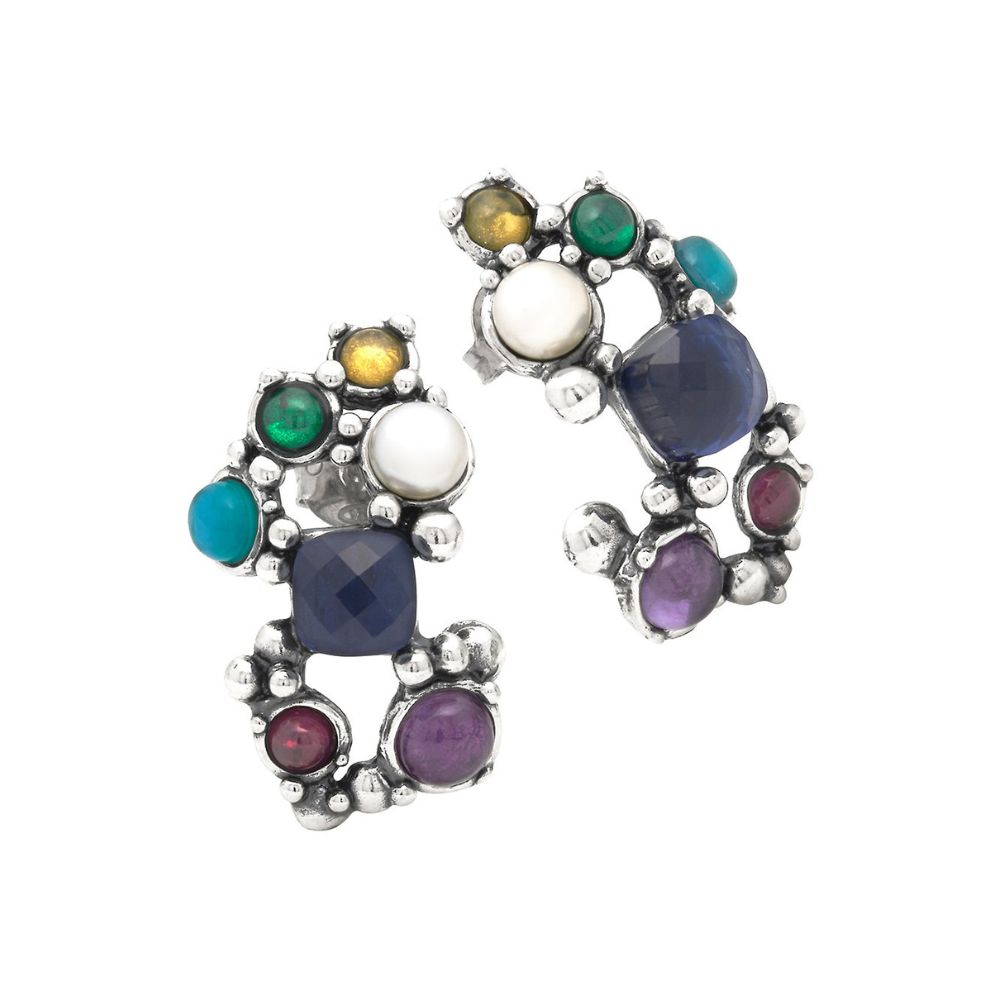 Presenti sui gioielli un mix di agata, ametista, perla naturale, onice, calcedonio, siamite e madreperla.